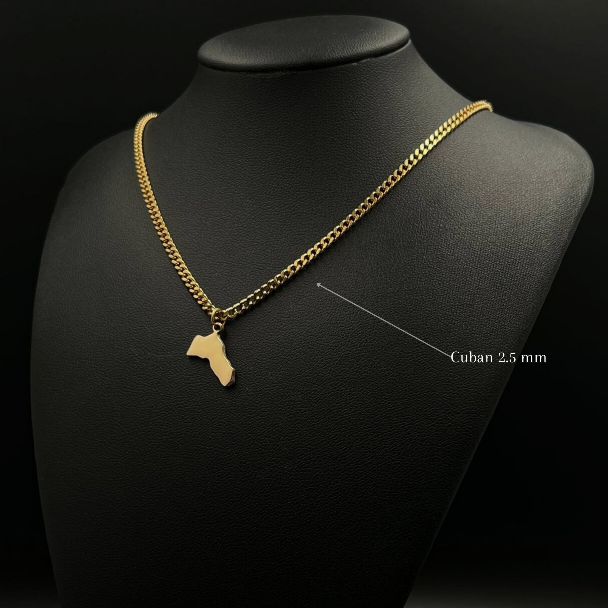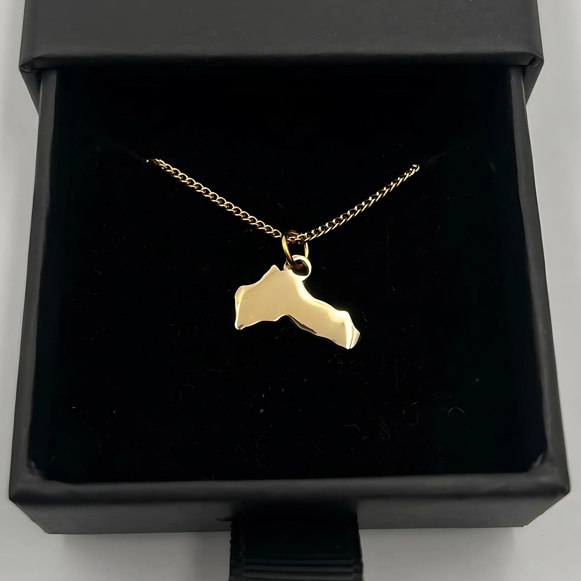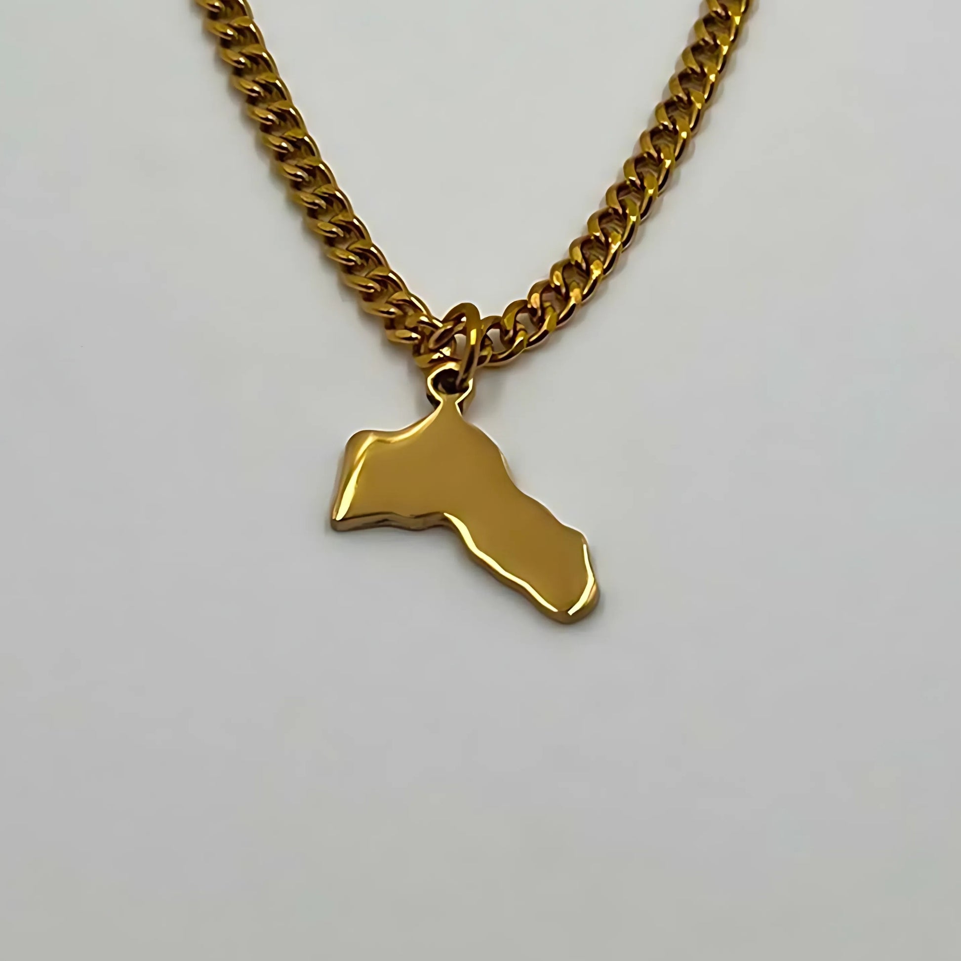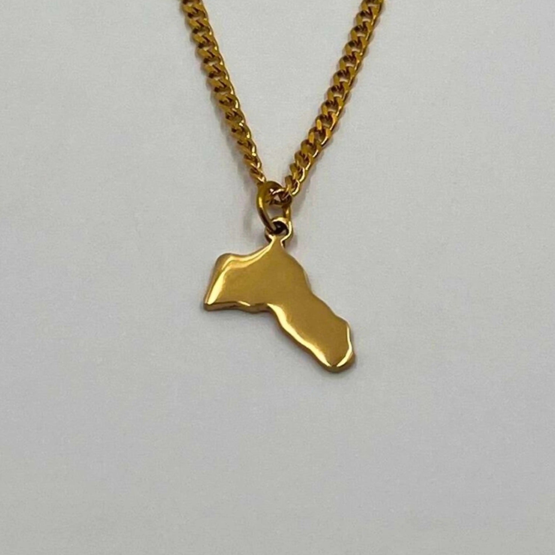The chain and pendant are 18-carat gold or rhodium-plated and feature the Kurdistan map.