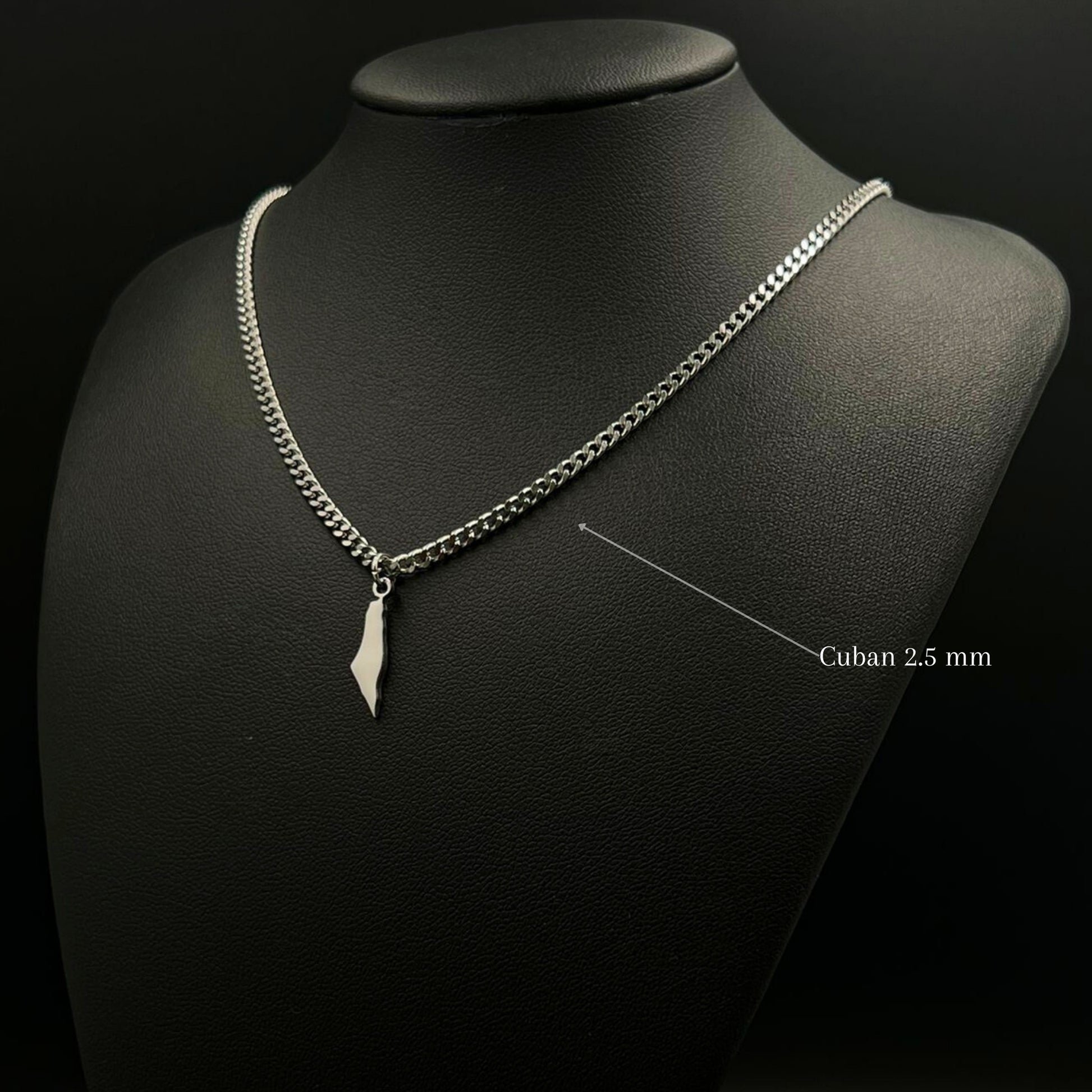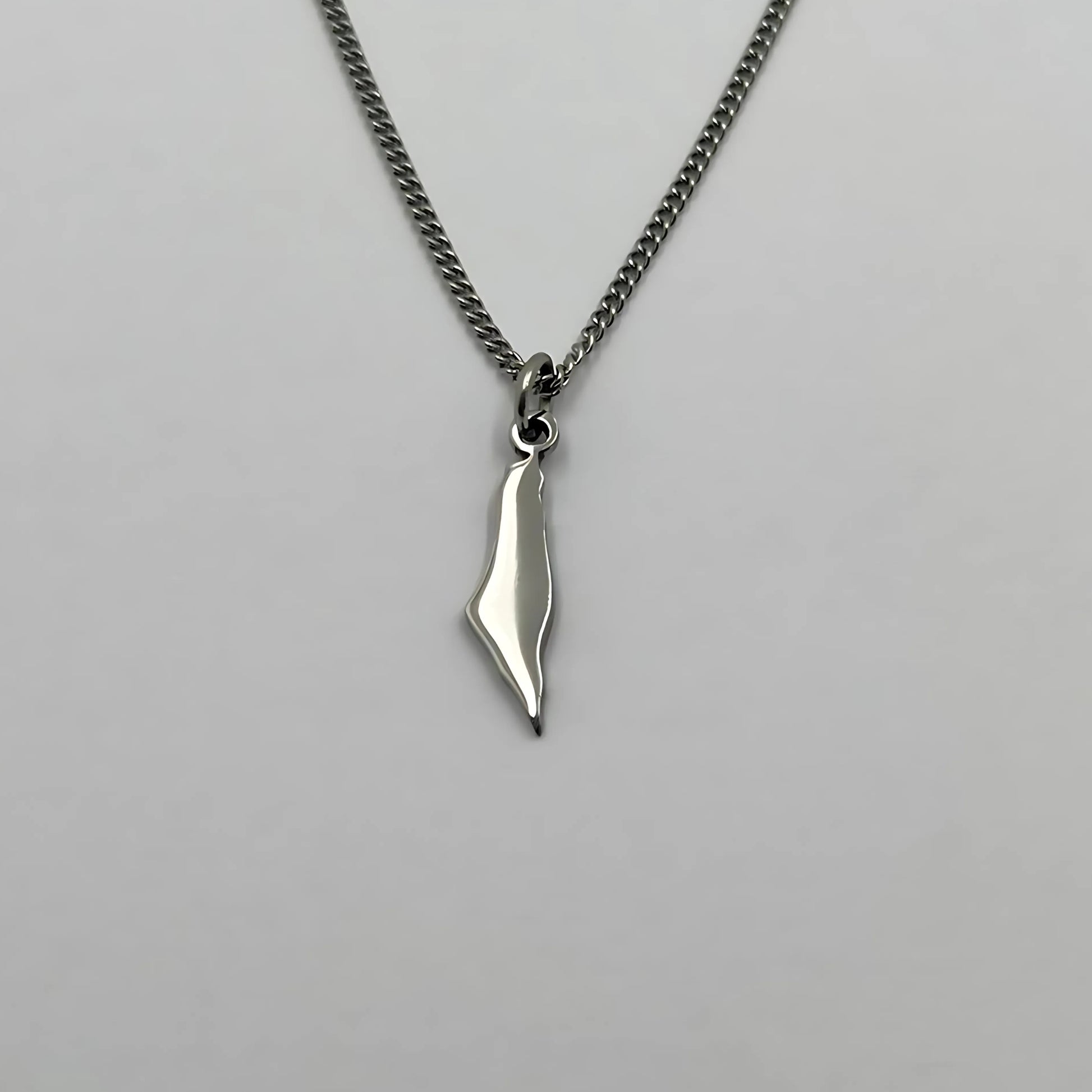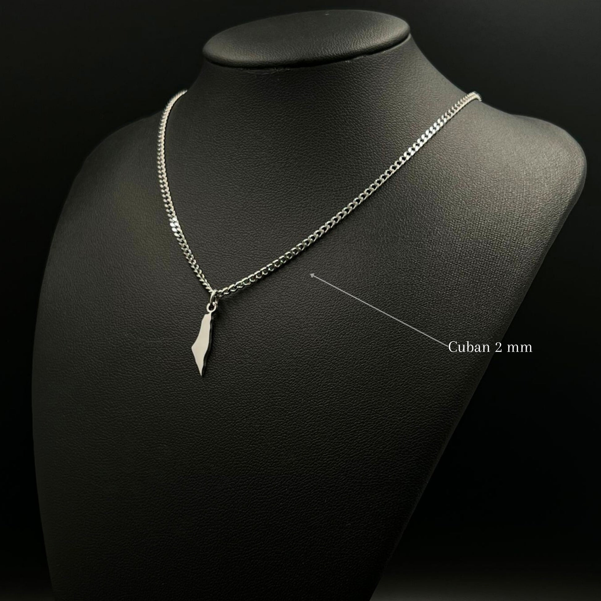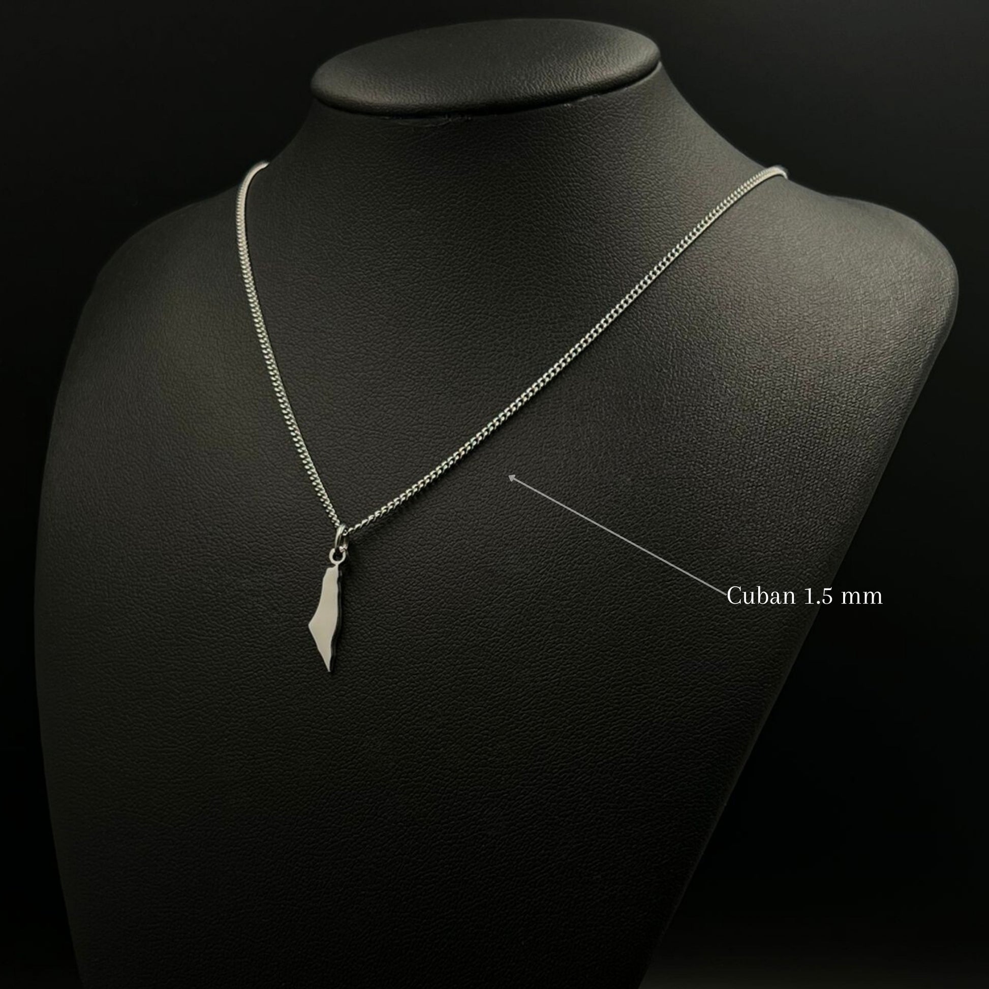 The chain and pendant are 18-carat gold or rhodium-plated and feature the Palestine map.