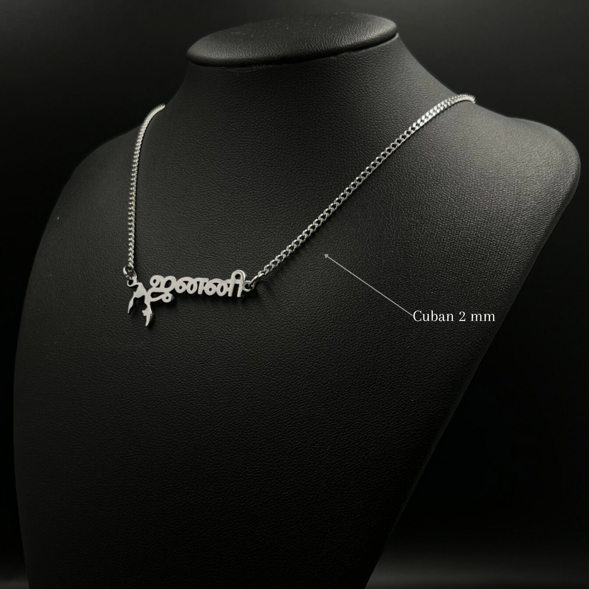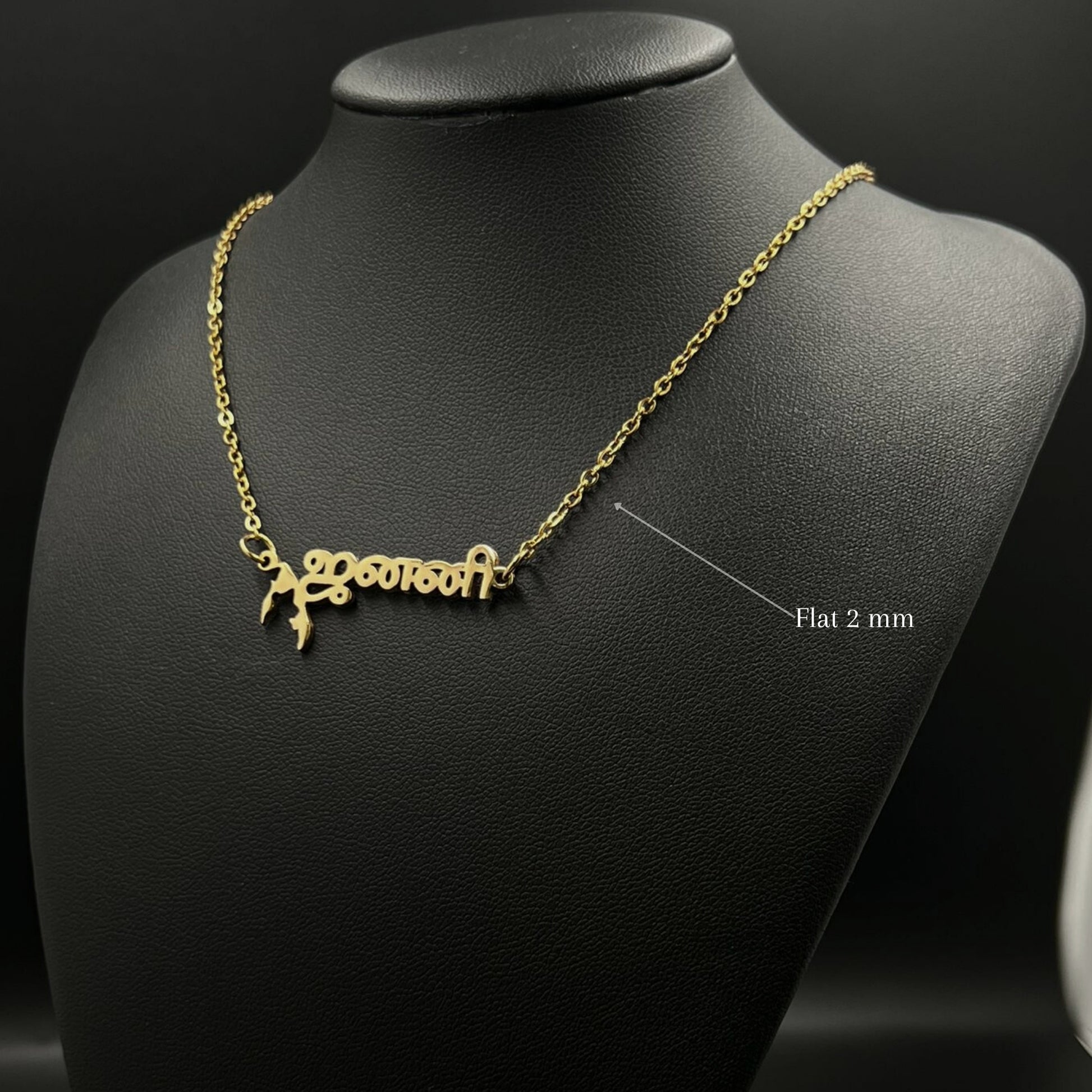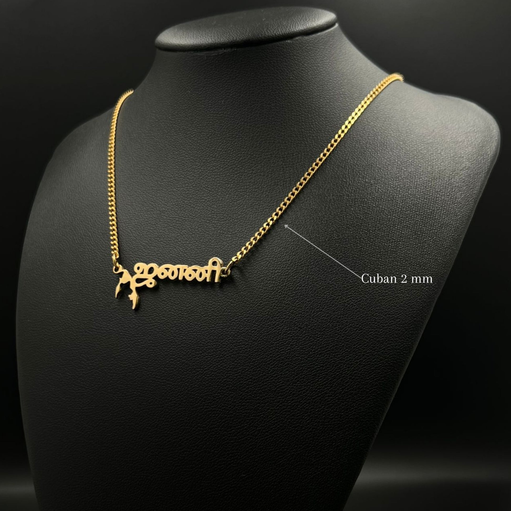 The necklace is 18-carat gold or rhodium-plated and features your name with the Tamil Eelam map.