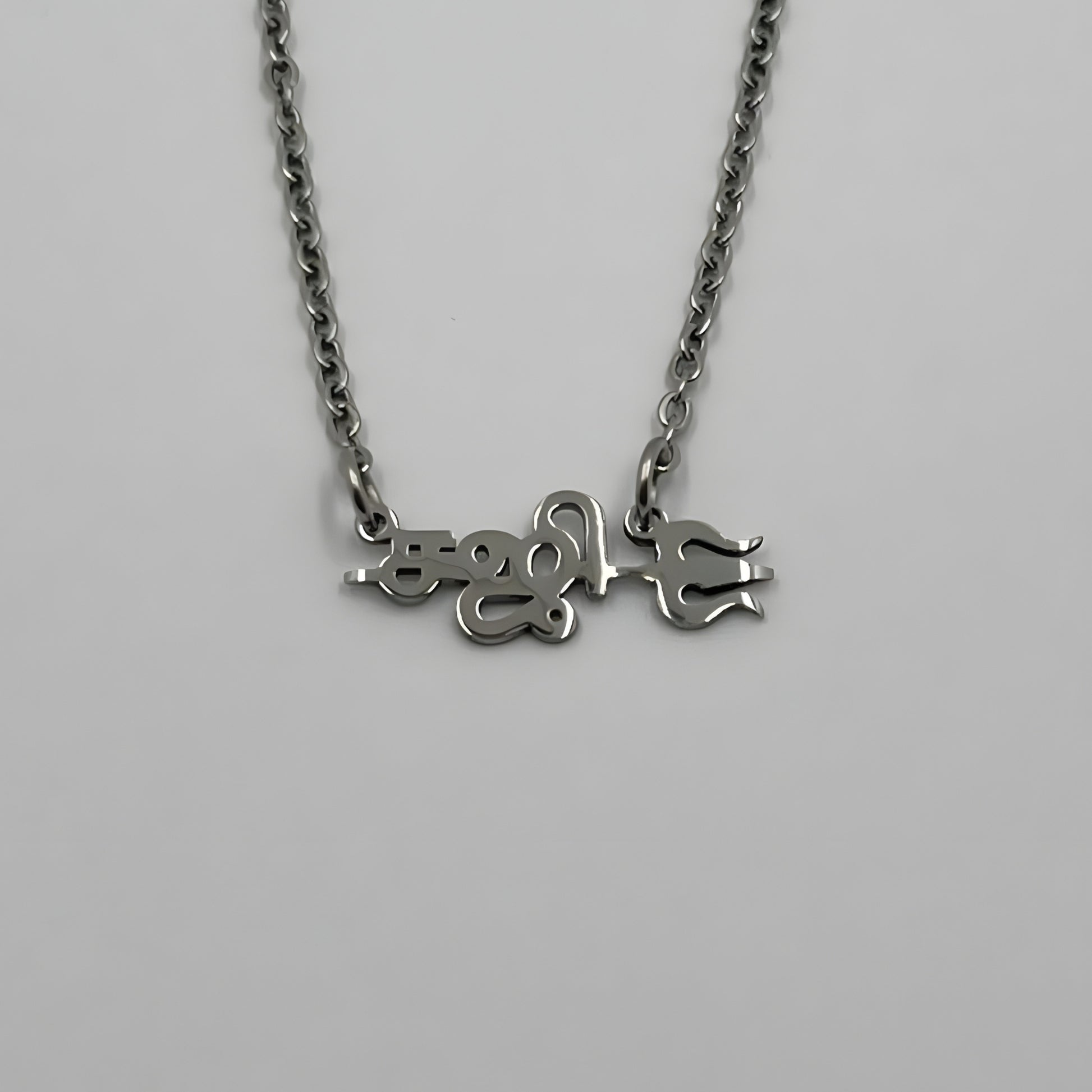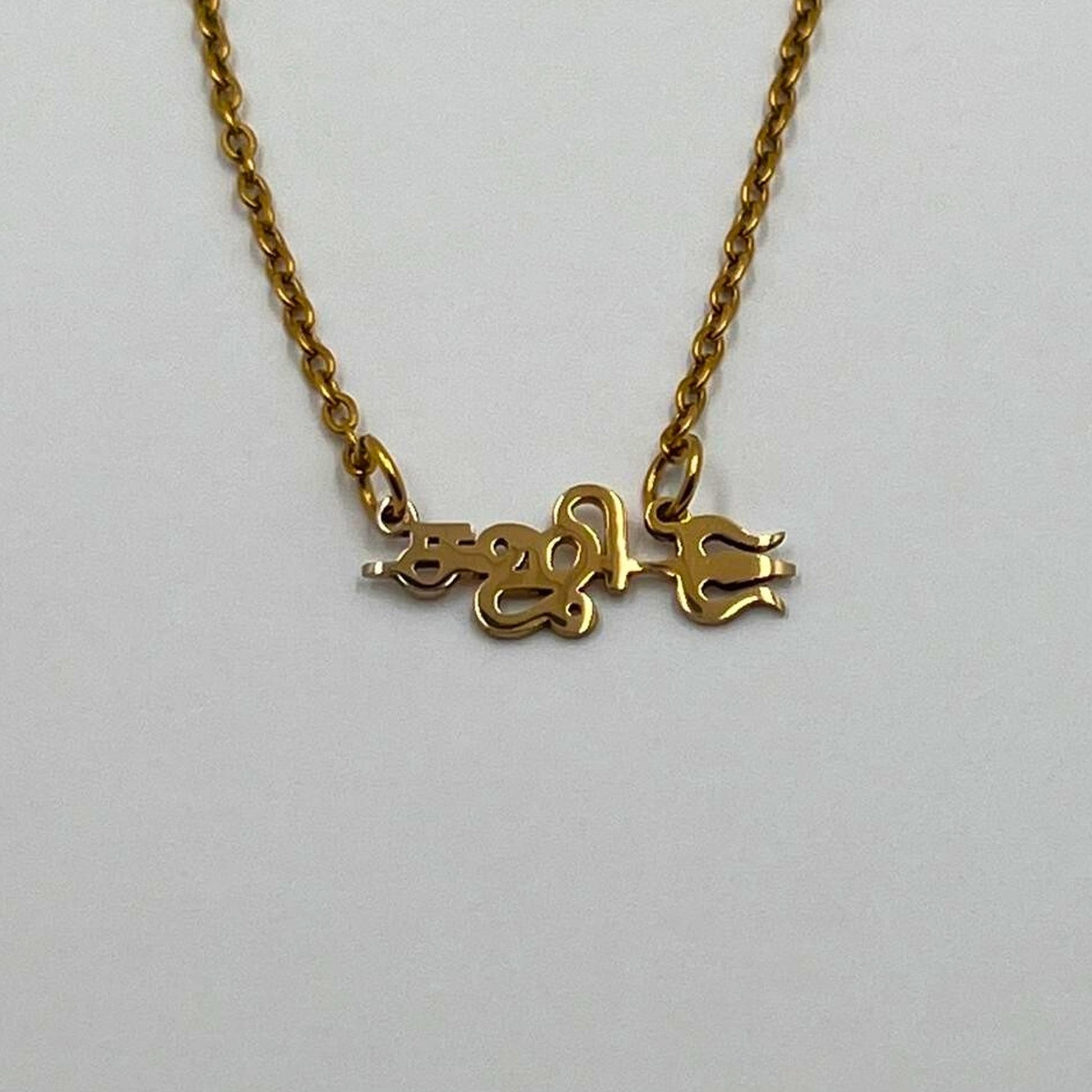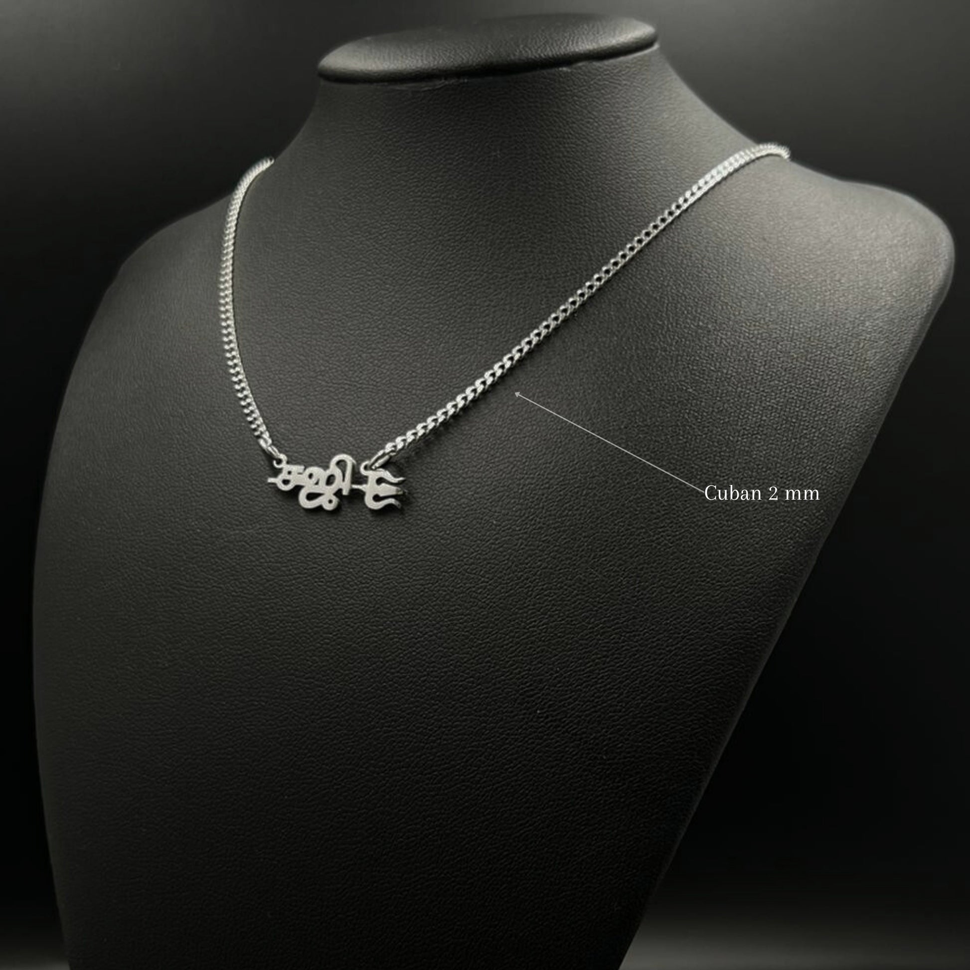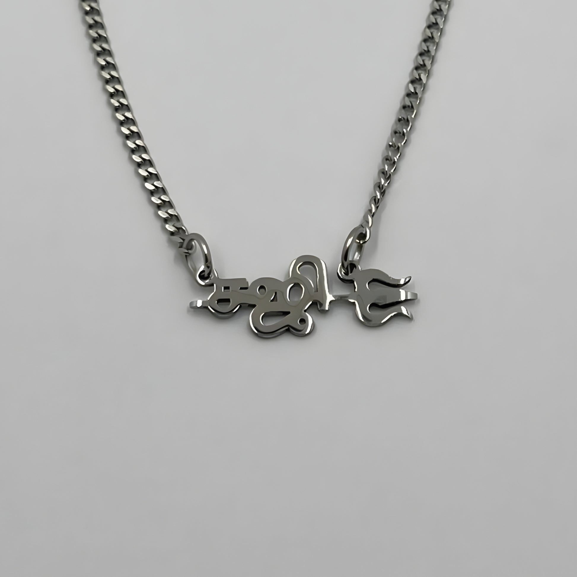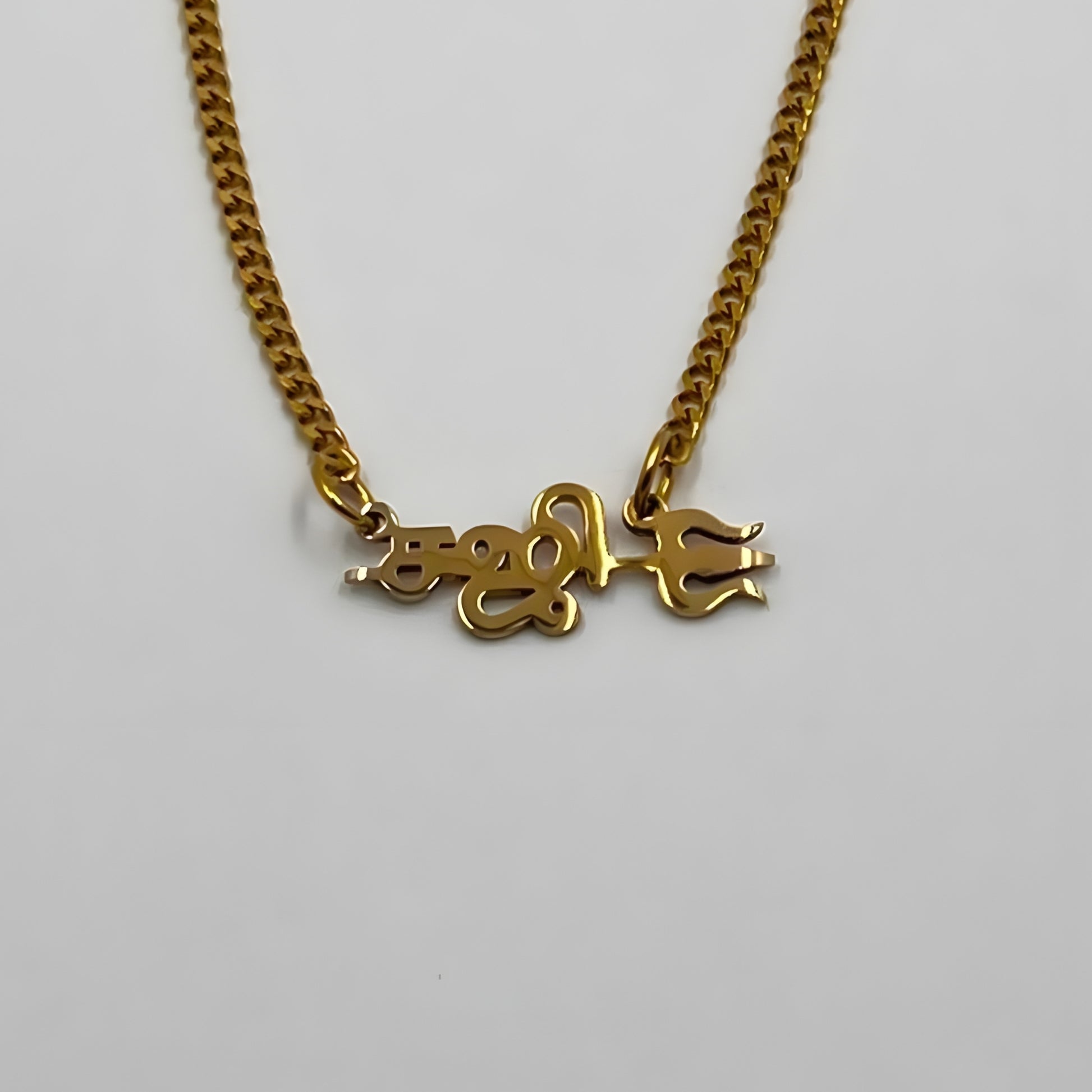 The necklace is 18-carat gold or rhodium-plated and features your name with a sullam.