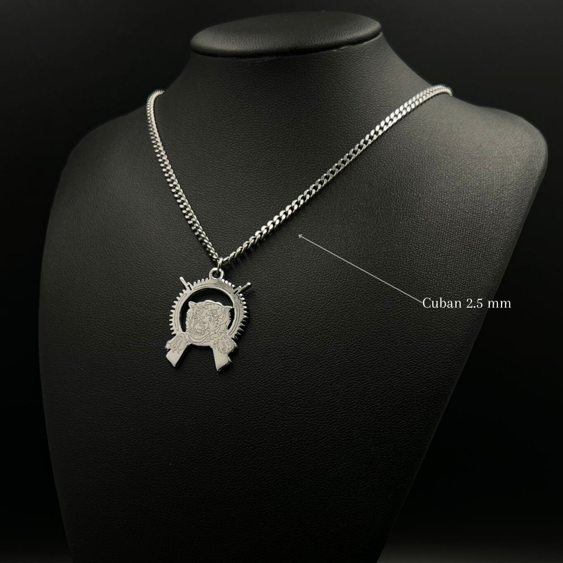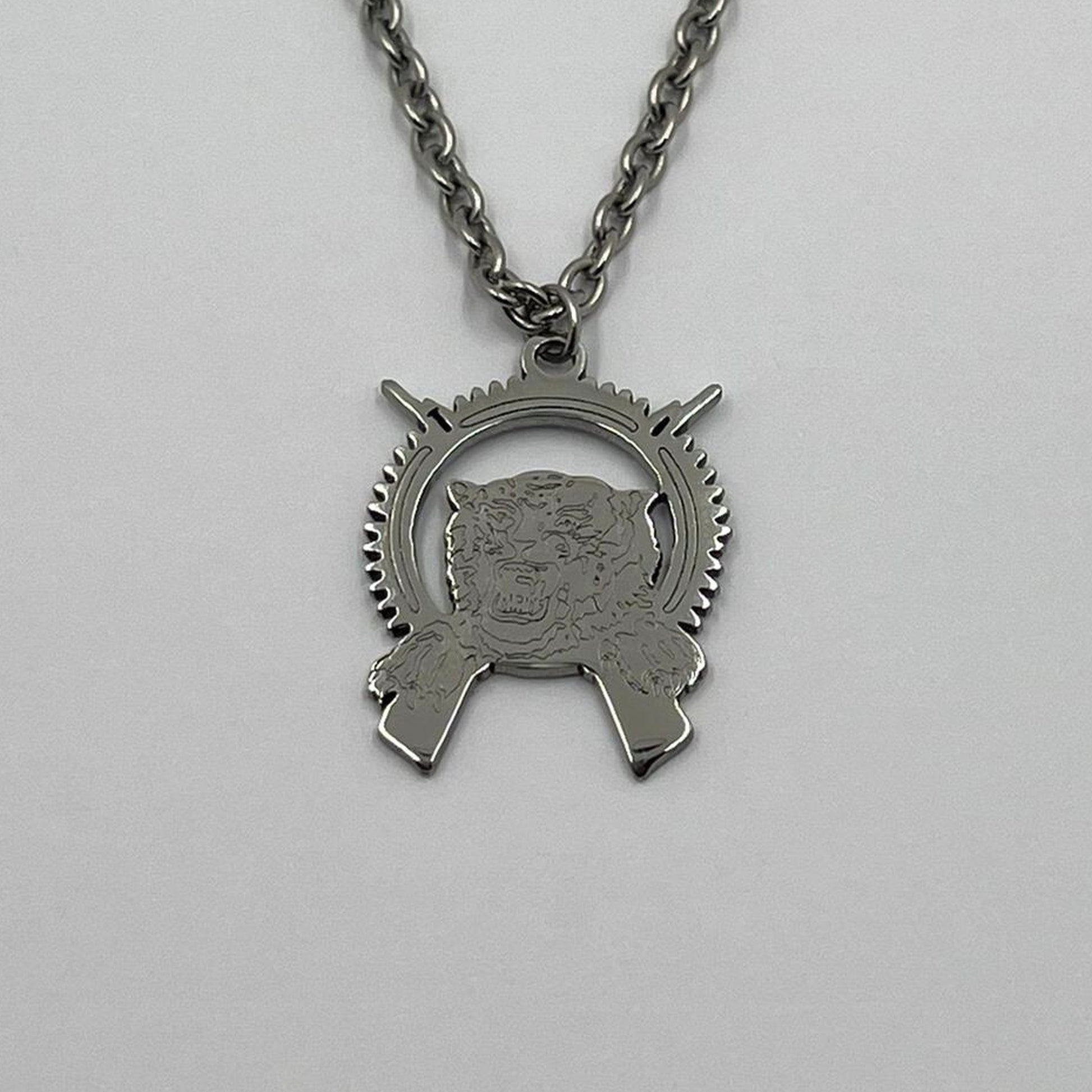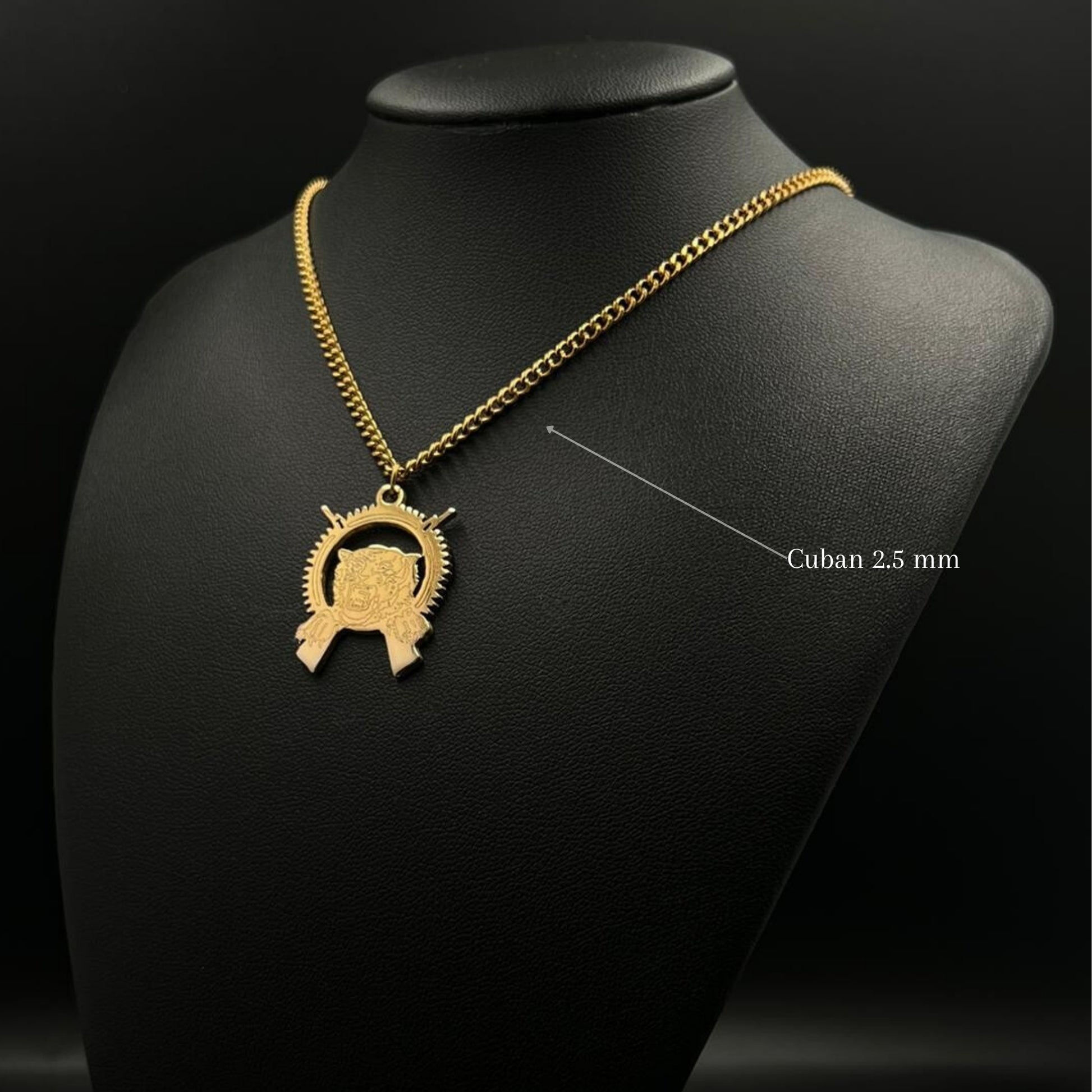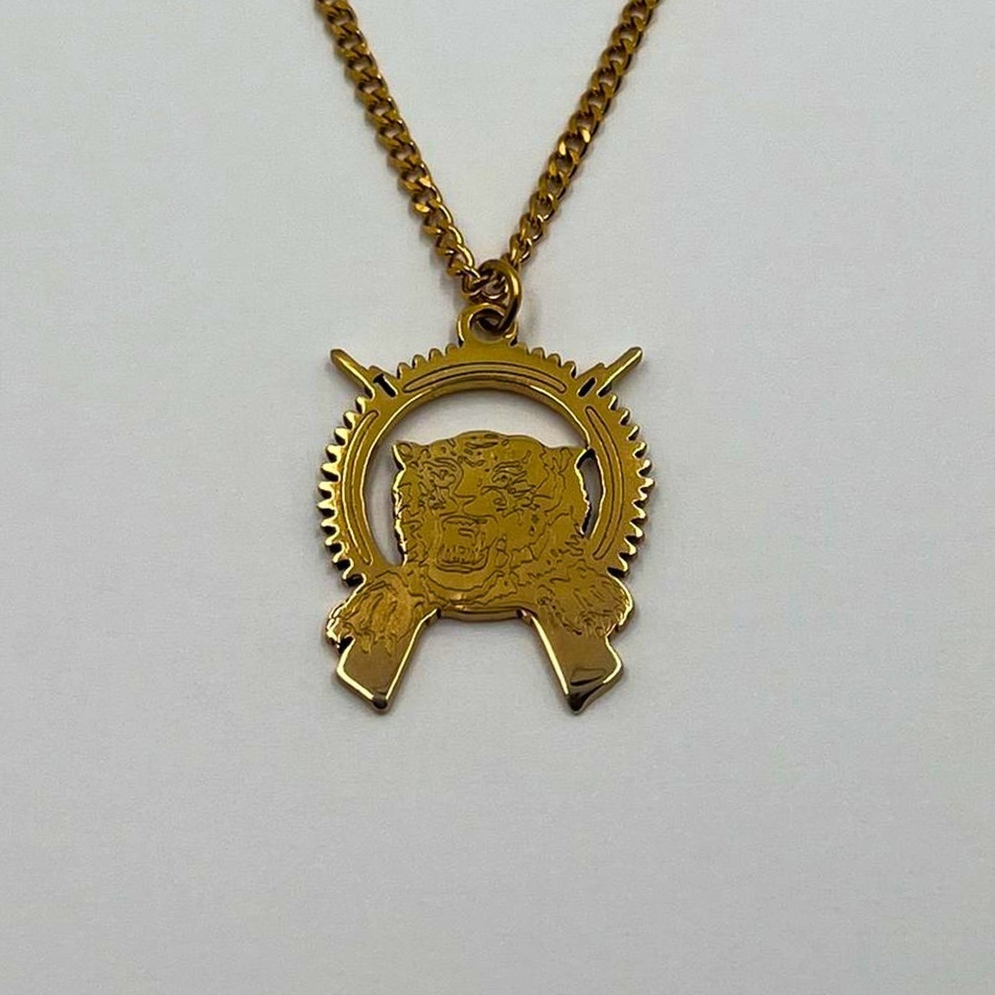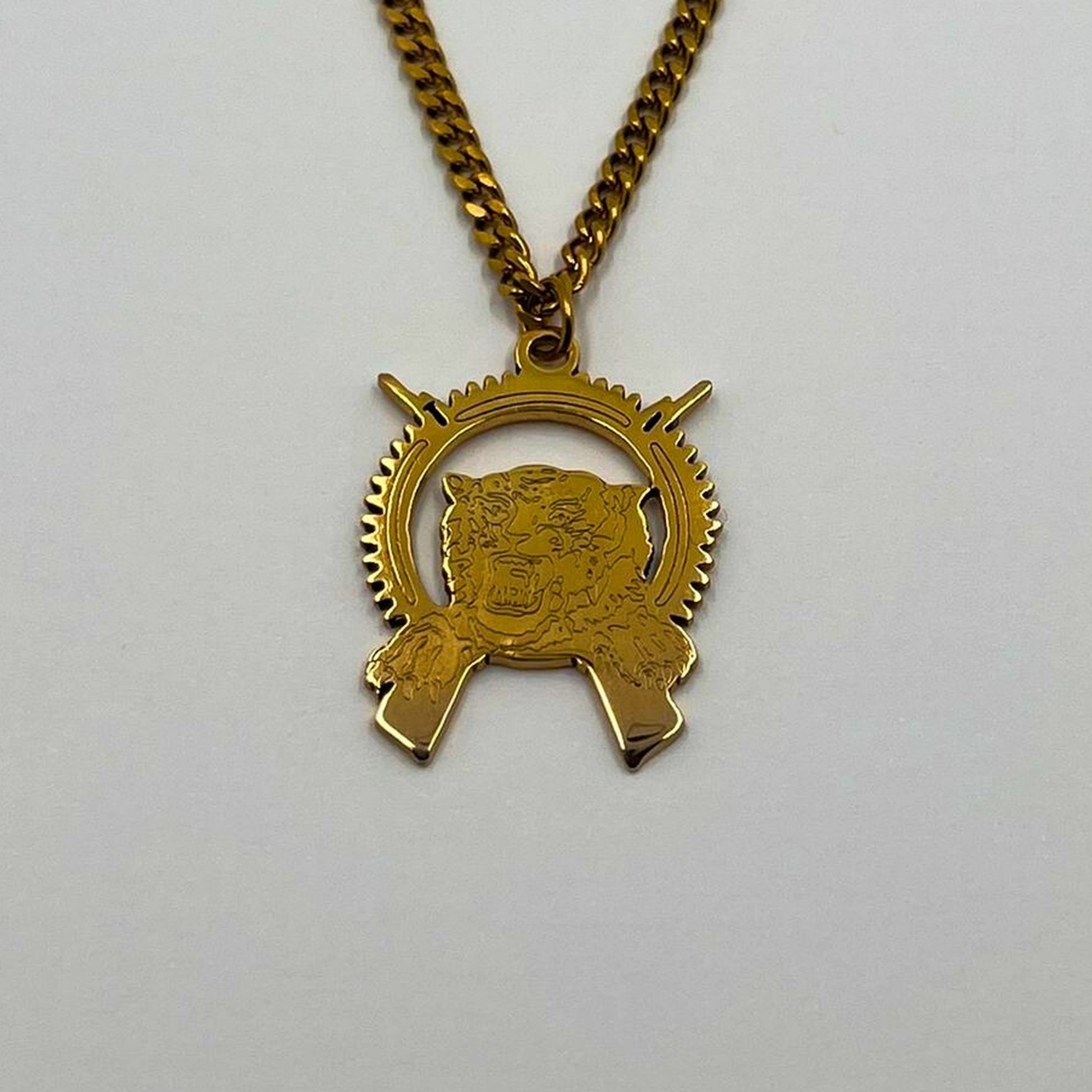 The chain and pendant are 18-carat gold or rhodium-plated and it represents the flag of Tamil Eelam.